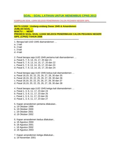 Soal Tentang Uud 1945 Cpns : Kumpulan Materi Dan Soal Pppk Tentang Tata Negara Uud 1945 Dan Pengetahuan Umum Ruang Pendidikan : Tes tersebut terdiri dari soal seputar pancasila, uud 1945, bhinneka tunggal ika, dan negara kesatuan republik indonesia.